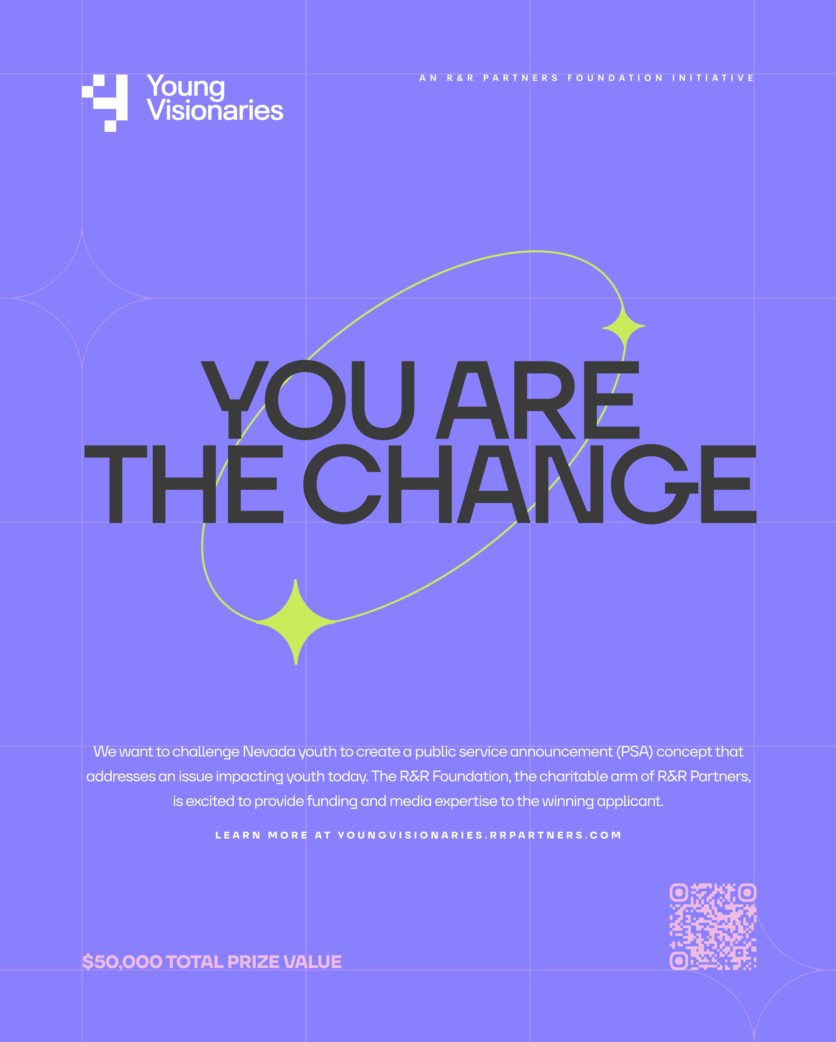 Young Visionaries is an initiative by R&R Partners Foundation that challenged youth in Nevada to address an issue facing society today through a PSA video competition. The competition winner had the opportunity to professionally shoot their PSA and also won $20,000 for the non-profit they partnered with.